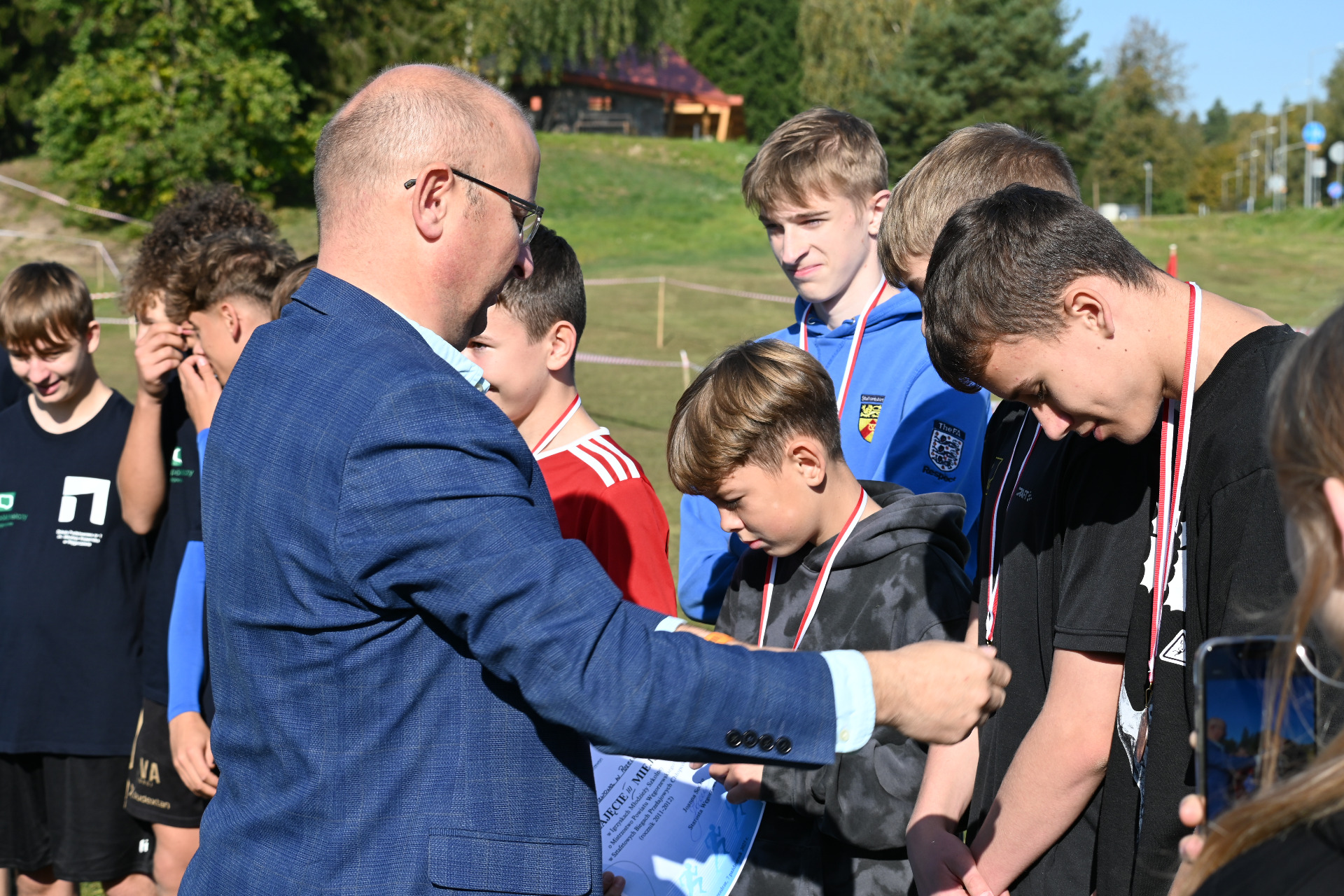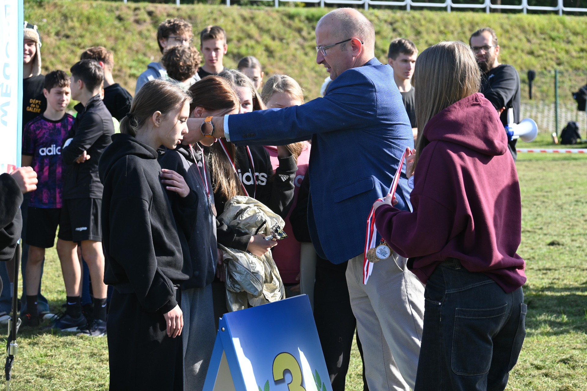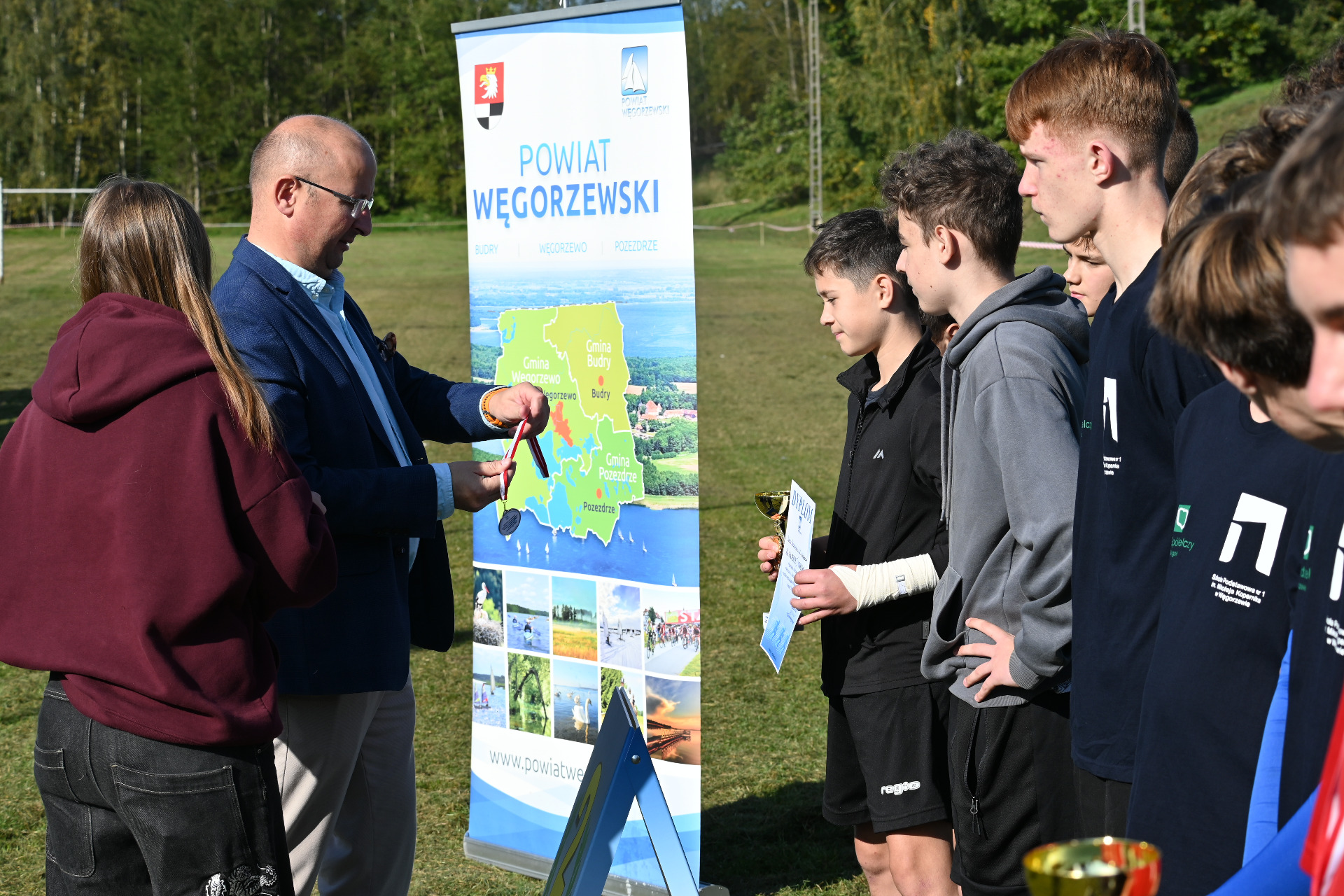 i młodsi). Za pierwsze trzy miejsca szkoły otrzymały puchary oraz dyplomy, a zawodnicy medale, które zostały wręczone przez Wicestarostę Roberta Nowackiego. Nagrody oraz wodę ufundowało Starostwo Powiatowe w Węgorzewie. Nad bezpieczeństwem uczestników czuwała pani Jolanta Jóźwiak – pielęgniarka.
