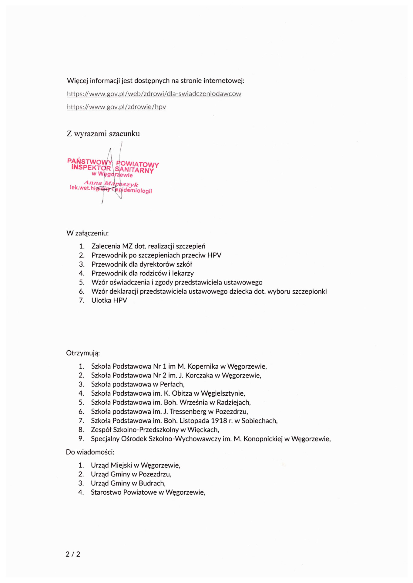 Państwowy Powiatowy Inspektor Sanitarny w Węgorzewie informuje, że trwa realizacja programu bezpłatnych szczepień przeciw wirusowi HPV dla dzieci.