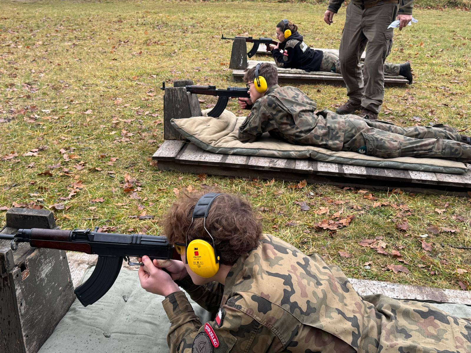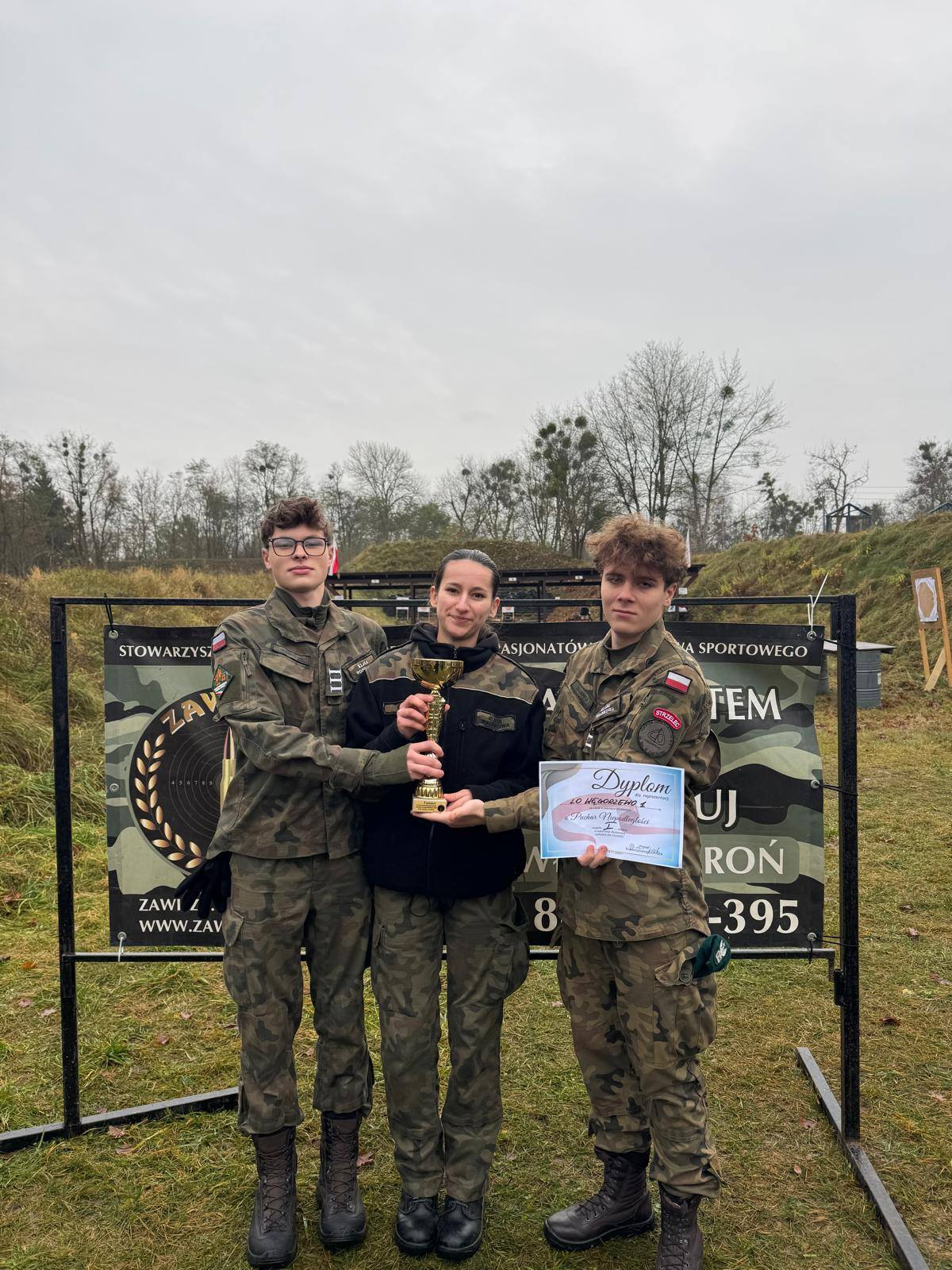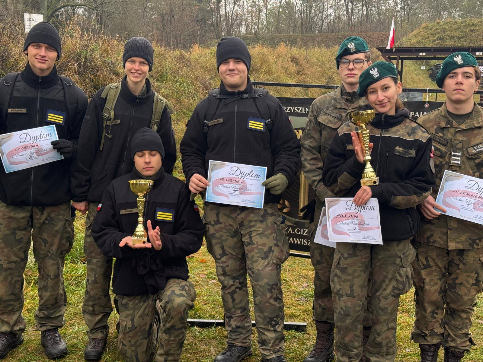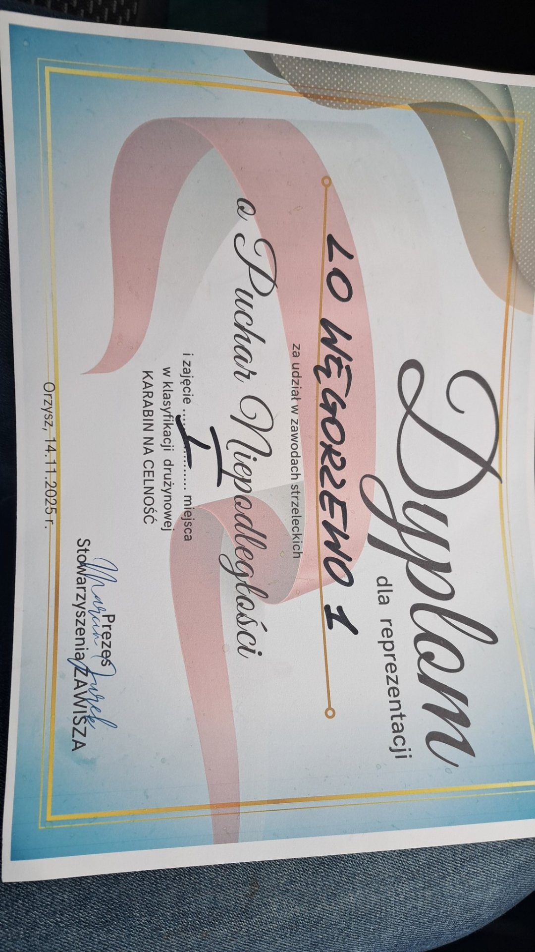 14 listopada 2025 r. nasze dwie trzyosobowe drużyny z klas mundurowych wzięły udział w Zawodach Strzeleckich o Puchar Niepodległości na strzelnicy „ZAWISZA” w Orzyszu – i wróciły z rewelacyjnymi wynikami!