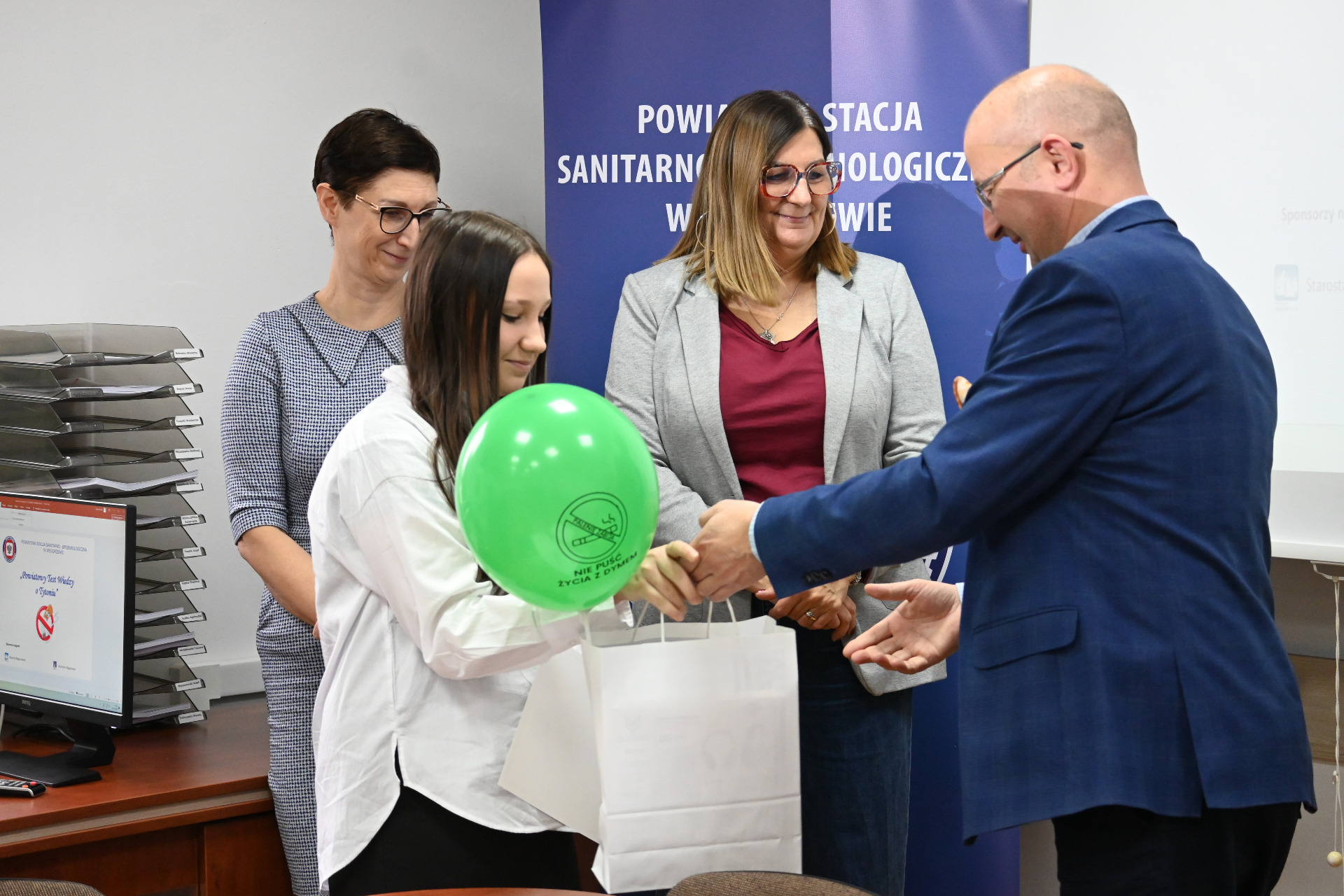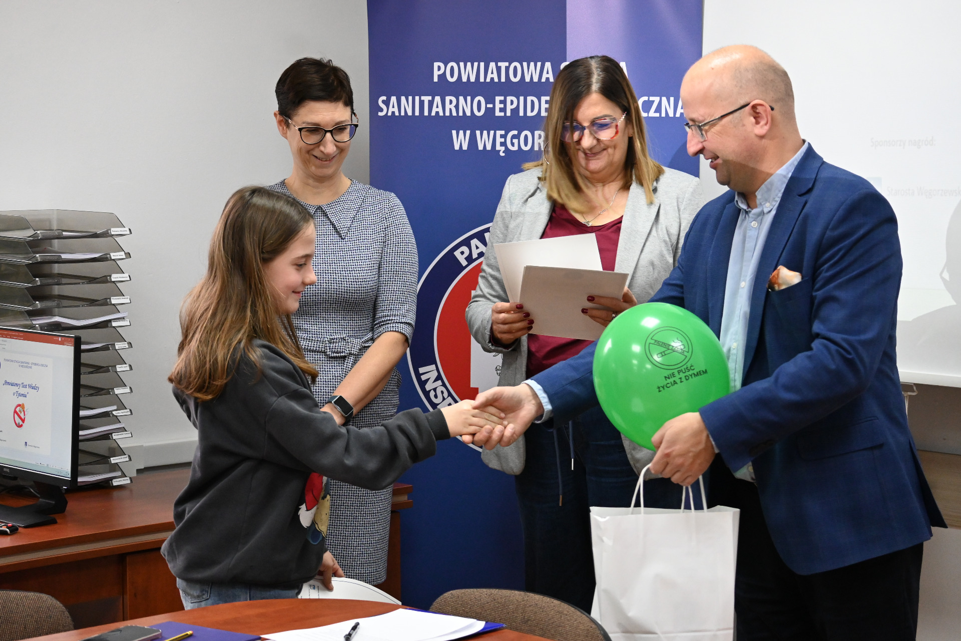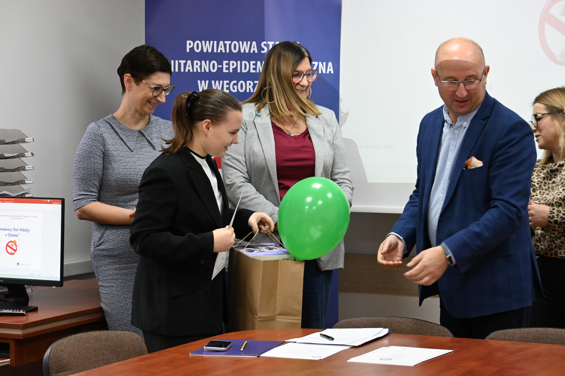 W Starostwie Powiatowym w Węgorzewie odbyło się dziś uroczyste wręczenie nagród laureatom Powiatowego Testu Wiedzy o Tytoniu, zorganizowanego przez Powiatową Stację Sanitarno-Epidemiologiczną z okazji Światowego Dnia Rzucania Palenia Tytoniu. W konkursie wzięło udział aż 128 uczniów klas VI z sześciu szkół podstawowych naszego powiatu!