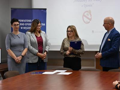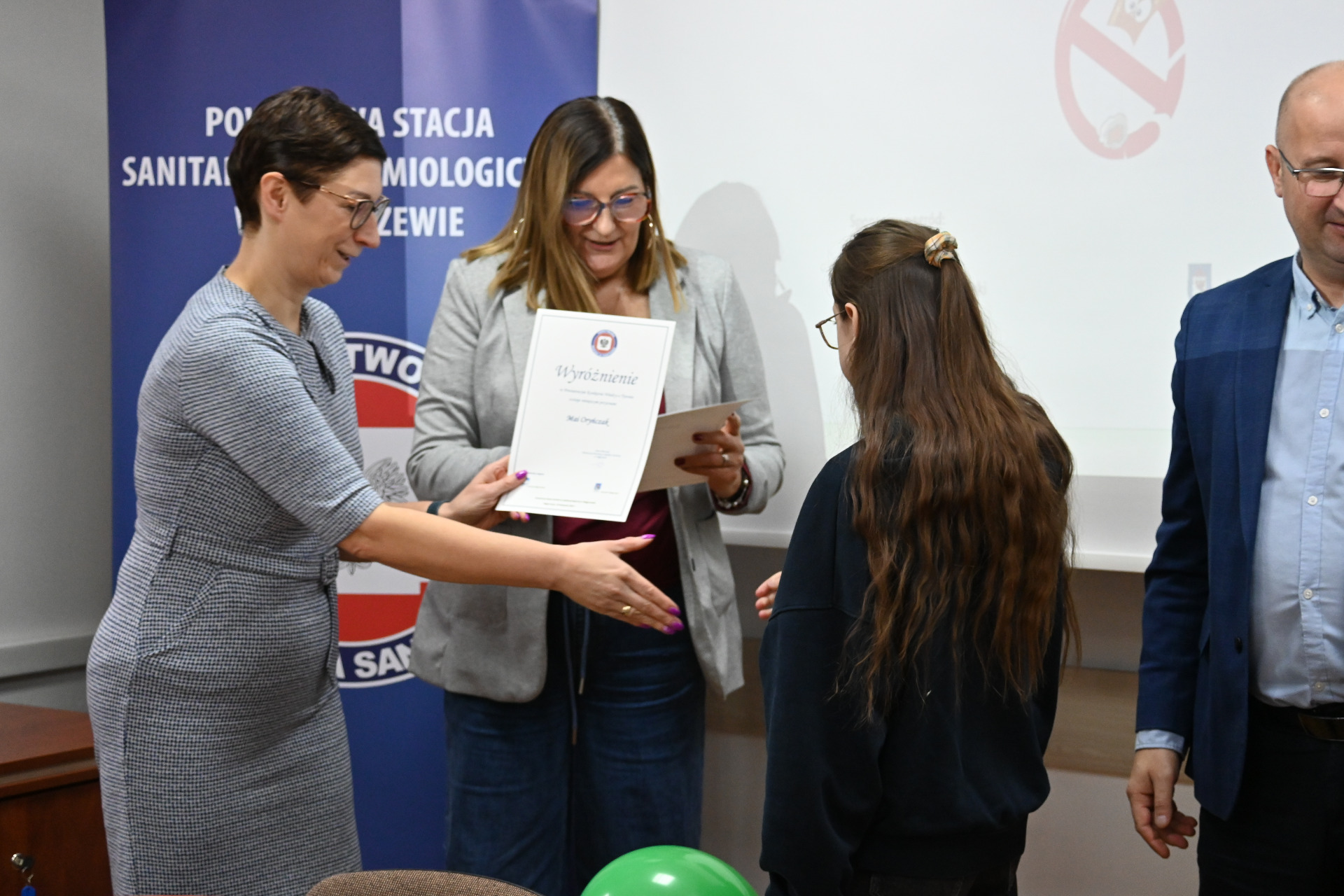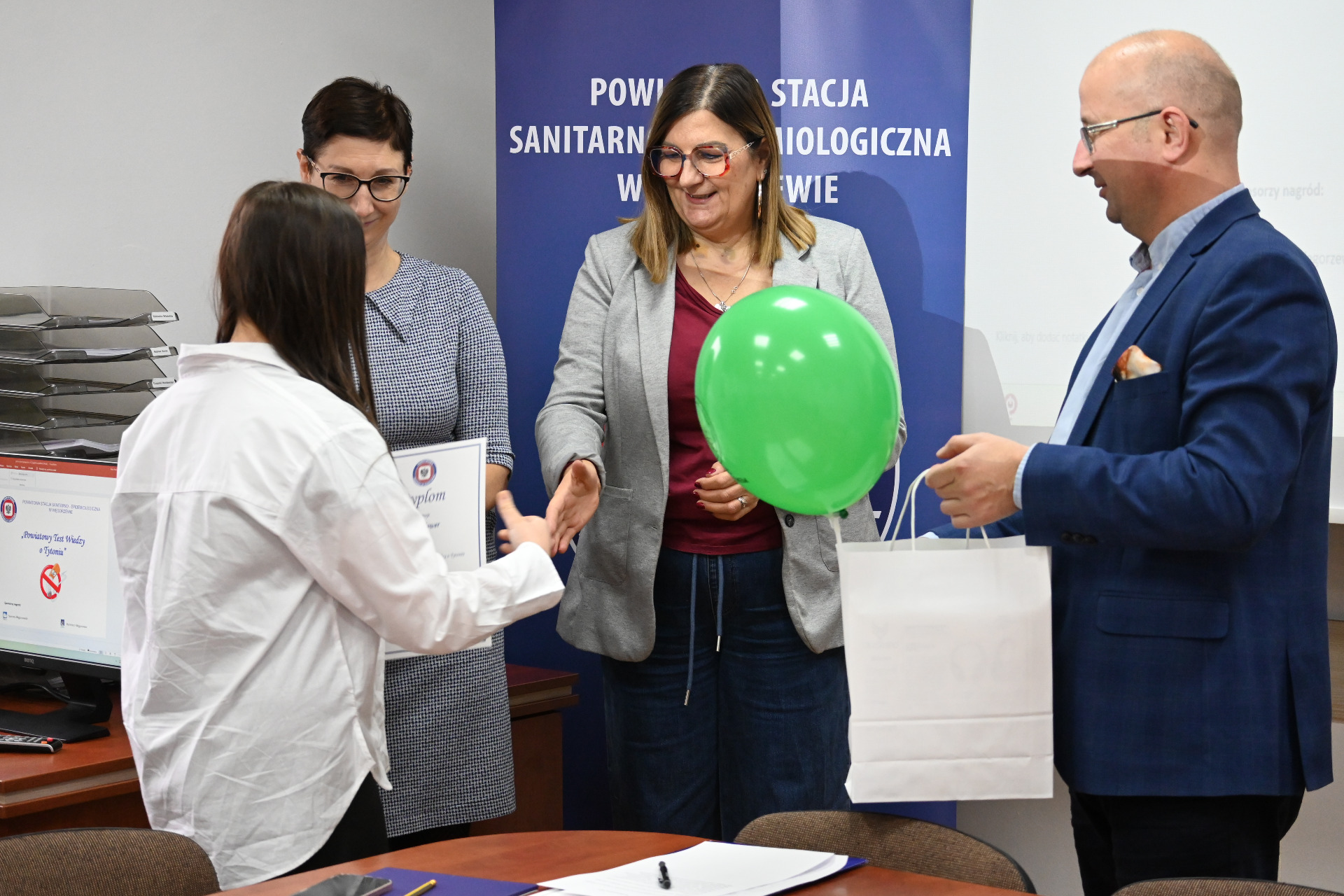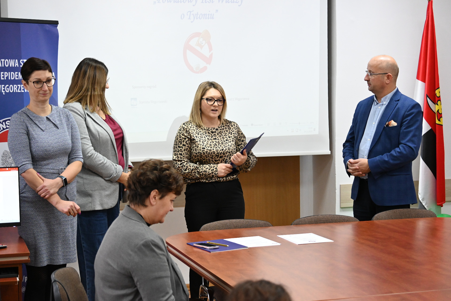 W Starostwie Powiatowym w Węgorzewie odbyło się dziś uroczyste wręczenie nagród laureatom Powiatowego Testu Wiedzy o Tytoniu, zorganizowanego przez Powiatową Stację Sanitarno-Epidemiologiczną z okazji Światowego Dnia Rzucania Palenia Tytoniu. W konkursie wzięło udział aż 128 uczniów klas VI z sześciu szkół podstawowych naszego powiatu!