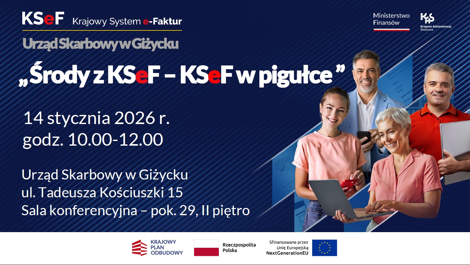 - 14 stycznia 2026 r. (środa) godz. 10:00-12:00 – „Środy z KSeF – KseF w pigułce”